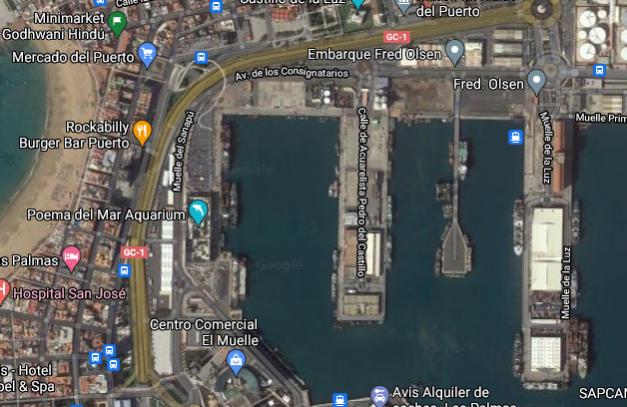 Auf anderer Webseite gesucht, gefunden, aber dort, wo nun wohl die Muelle Leon y Castillo ist.