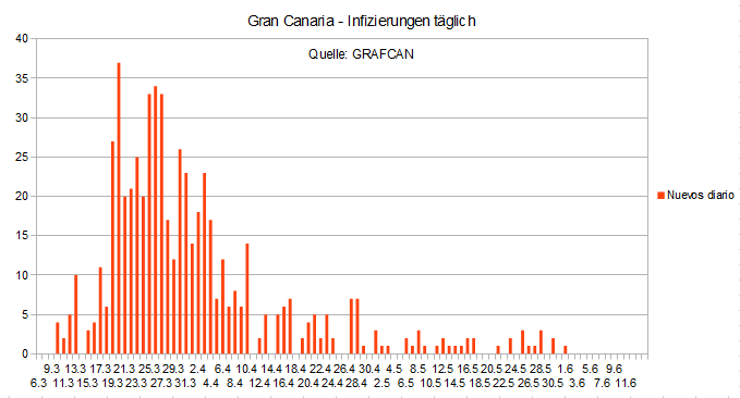 Auf Teneriffa +- täglich zwischen 1-2 neue Fälle.