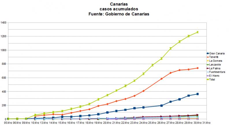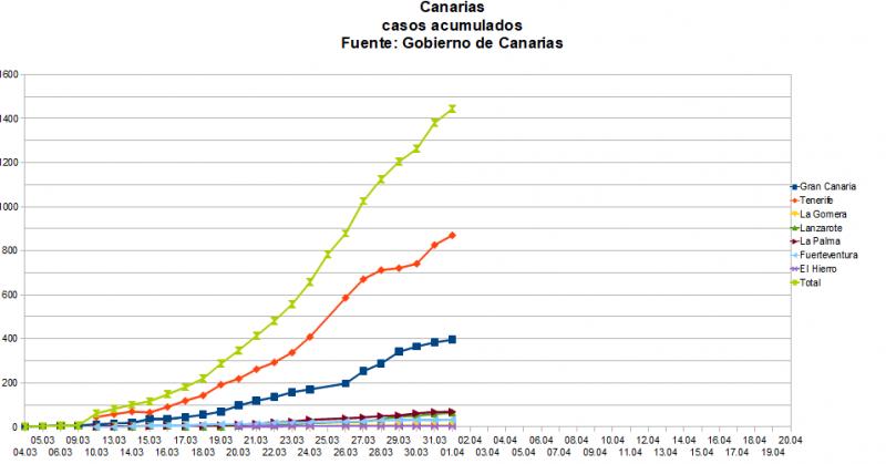 mensch, da hatte ich gedacht, in Teneriffa hätten sie das Plateau erreicht, aber weit gefehlt, nun steigt es wieder steil an. Auf GC bin ich mit der Entwicklung zufrieden. Gesamtspaniens Kurve verlangsamt sich, was darauf hindeutet, dass der Höhepunkt erreicht ist und es nun langsamer weiter geht bzw. bald auch wieder rückgängig sein dürfte. (eldiario.es)