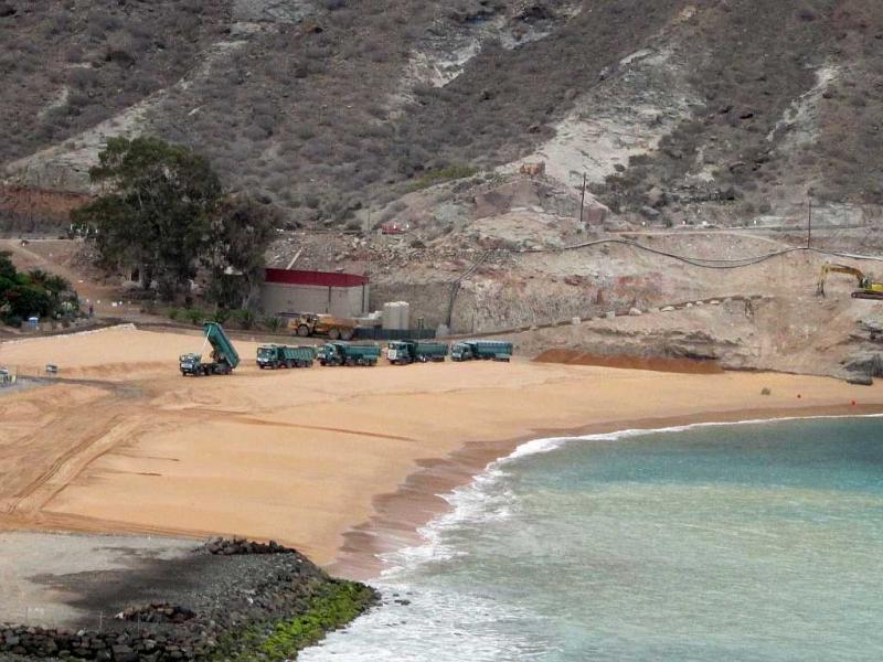 Der Strand von Tauro füllt sich - gestern kamen im Laufe des Tages 20 - 25 LKW-Ladungen Sand an