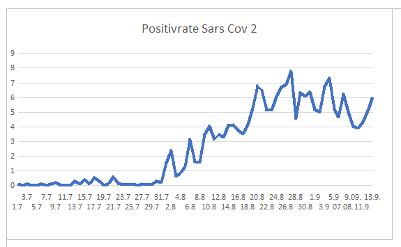 Durchgeführte Tests am 13.9.: 2226 davon 1983 negativ und 241 positiv. - 2 ohne klares Ergebnis.
