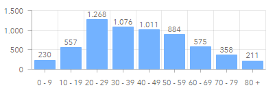 Hier noch das Altersspektrum der aktiven Fälle