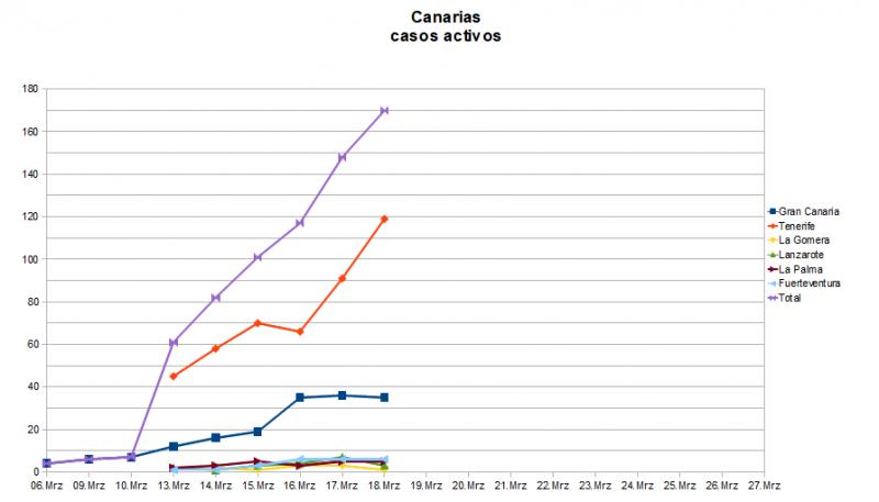 Aktuell aktive Fälle: 170 - 18.3.20 / (138 - 17.3.20) (111) (101) (82) (63) Fälle ->in Klammern Zahlen vom Vortag.