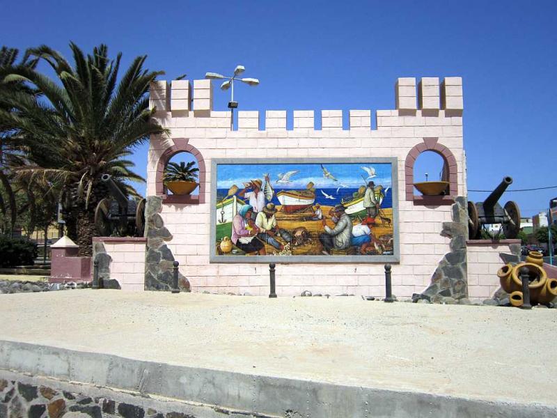 die Dame steht mitten auf der Promenade von Playa la Canteras in Las Palmas