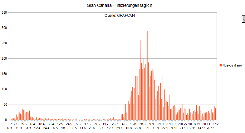 Im Gegensatz zu Teneriffa, dort steigt die Infektionsrate wieder an und liegt wieder bei über 100 pro Tag.