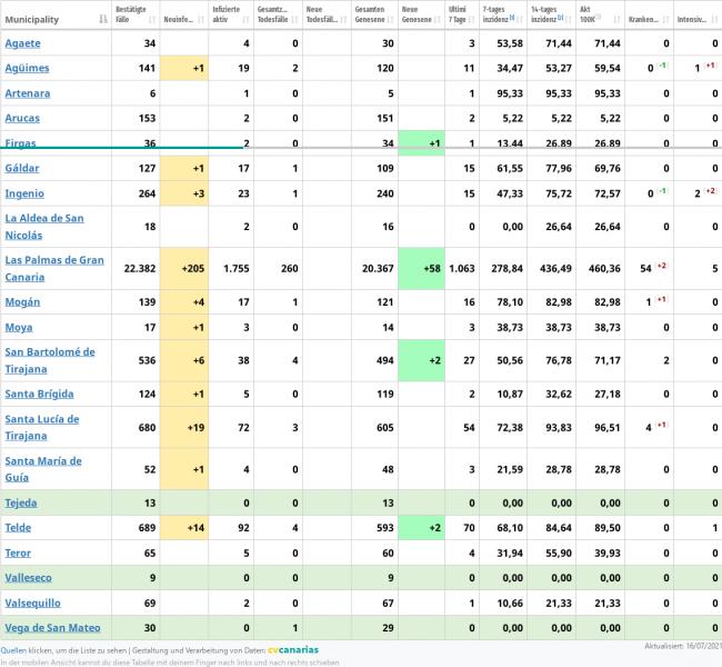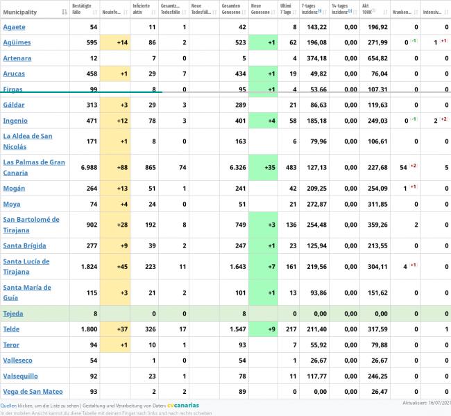 Als Bsp., die 19 von Agüimes halten sich auch aktuell in diesem Bezirk auf, es sei denn es liegen davon Personen im KH. Aber zugeordnet werden sie dann trotzdem Agüimes. Im Grunde also nach der Meldeadresse.