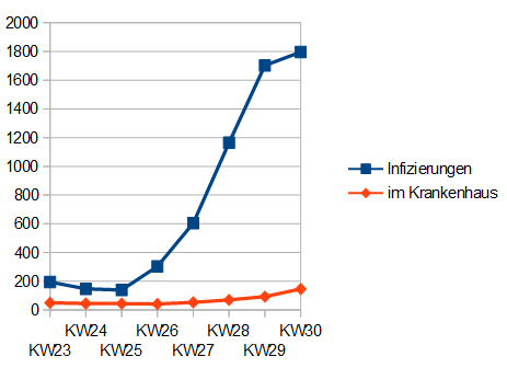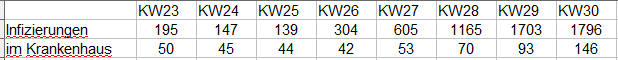 14-Tage Inzidenz am 29.7. = 469,8 (456,2) (439,6) (433,3) (423,6) (407,1) (385,1)