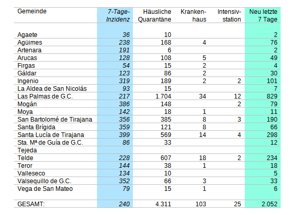 Ich hänge ergänzend die Aufschlüsselung nach Wohnsitzgemeinden dran, errechnet aus den aktuellen Daten des SCS. Dann kann man die beiden Datensätze mal direkt vergleichen: