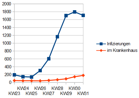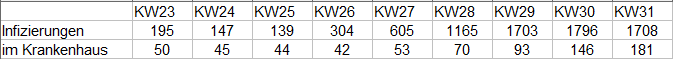 14-Tage Inzidenz am 5.8. = 506,8 (507,5) (503,4) (500,4) (498,6) (494,4) (480,2)