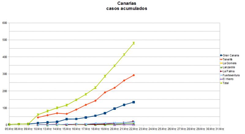 Ich habe noch eine positive Nachricht. Wie tc-490 schon feststellte, gibt es seit vier Tagen Neuinfizierte von ca. 70 pro Tag. Das ist eine Stagnation und bedeutet, dass die Maßnahmen (Ausgangssperre) Wirkung zeigen. Denn normalerweise ist es eine Exponentalkurve, wo jeden Tag mehr Infizierte als am Vortag dazukommen. Wenn also die Zunahme gleich ist, ist das ein gutes Zeichen.
