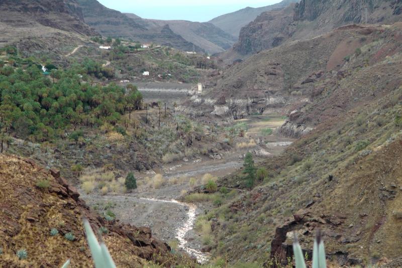 Das hier ist der Staudamm unterhalb von Santa Lucia (La sorrueda). Heute früh hat es ein paar Stunden geregnet, doch wie man sehen kann, kam das Wasser nicht mal ganz bis zum Stausee, sondern versickert vorher. Schade das das Wasser unten ins Meer fließt und leichte Überschwemmungen verursacht. Hier oben könnten wir es dringend gebrauchen.