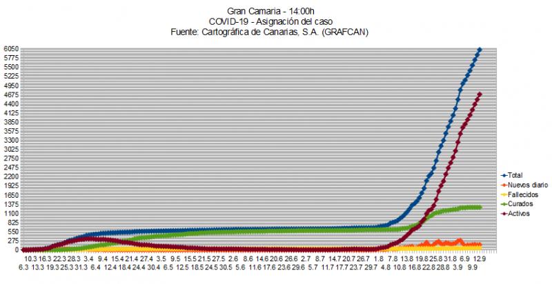 Kurz wieder ergänzend das wöchentliche Update vom spanischen Gesundheitsinstitut für die Provinz Las Palmas, also unsere Insel und alle östlich davon. Links die Anzahl der bekannten täglichen Neuinfektionen, rechts die daraus resultierenden Reproduktionzahlen:
