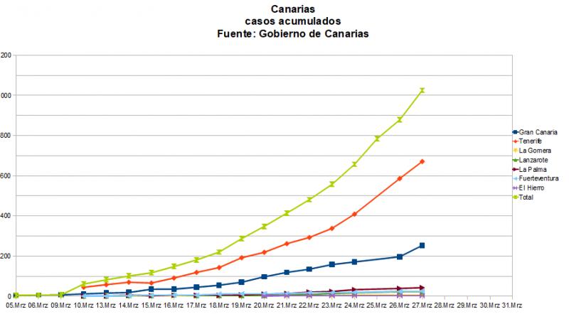 Der starke Anstieg wird wahrscheinlich Teneriffa zu zuordnen sein, dort ist das Virus in einer Seniorenpflegeeinrichtung nachgewiesen worden und hat alleine dort 36 Personen betroffen. Darunter sind nicht nur Senioren betroffen, auch das Pflegepersonal bis hin zum Pfarrer sind positiv.