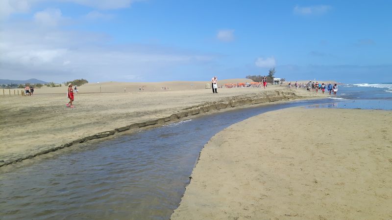 Da kommt man dann gut hin und zurück. Alternative ist der Weg zurück an der Charca vorbei Richtung Palace Maspalomas, oder eben mit Bus. Bei Flut ist ist halt so, dass die Wellen mitunter bis zu den hohen Dünen