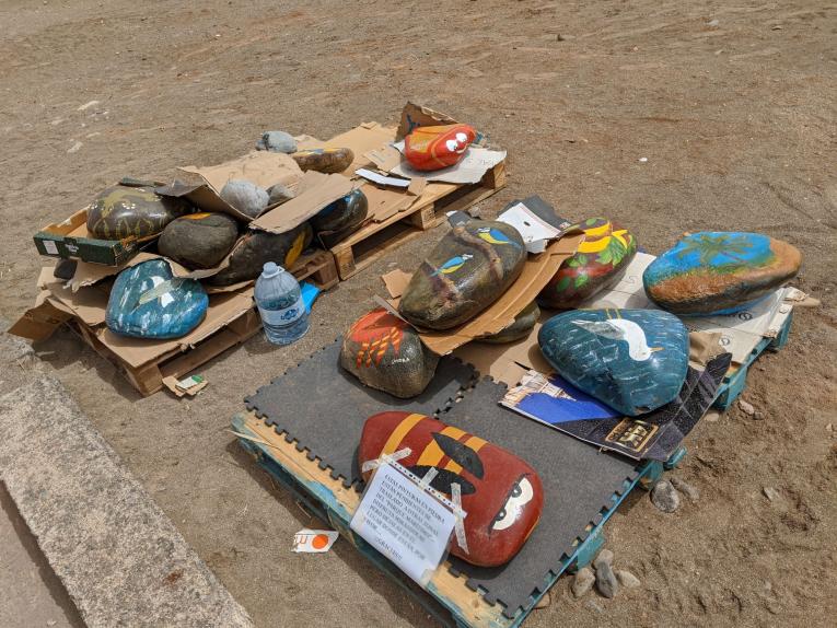 Bin jetzt auf meinen Erkundungen seit der Ausgangssperre endlich auch dort angelangt. Seit wann gibt es denn nördlich der Becken diesen neuen Park mit den endlos vielen bemalten Steinen? Haben Kinder dort die Steine etwa über den Lockdown hinweg angefertigt? Kann natürlich sein, dass ich es vorher nur nicht mitbekommen habe. Sieht jedenfalls sehr süß aus, und ist wirklich eine Aufwertung mit einfachen Mitteln dieser großen bisher ungenutzten Fläche, jedenfalls aus meiner Sicht.