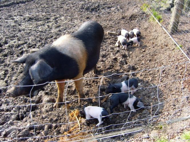 vor Wochen sahen sie noch so aus, es sind "Angler Sattelschweine"